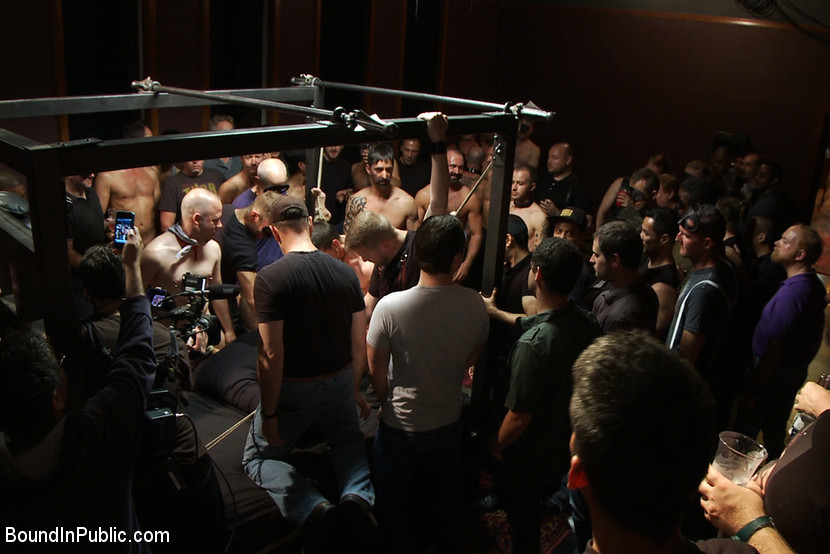 Its the weekend of Folsom Street Fair and the men are all horned up about it. Josh West takes Dirk Caber into the ballroom and have him ties to the wooden cross. The horny partygoers stroke Dirk and tease his hard cock. They rip off his clothes and use him. Josh West and his slave boys take Dirk around to service hot horny studs. Derek Pain and Leo Forte show up and the party begins. We suspend Derek and torment his nipples because he hates that. Leo Forte flogs Derek and Dirk until their muscles turn red. They both endure the full body zipper. Dirk receives loads after loads of cum throughout the party. Josh tosses Dirk on the bed and the feeding frenzy begins. Everyone takes turns fucking him and coming on his face. They all piss on him before they leave the party.